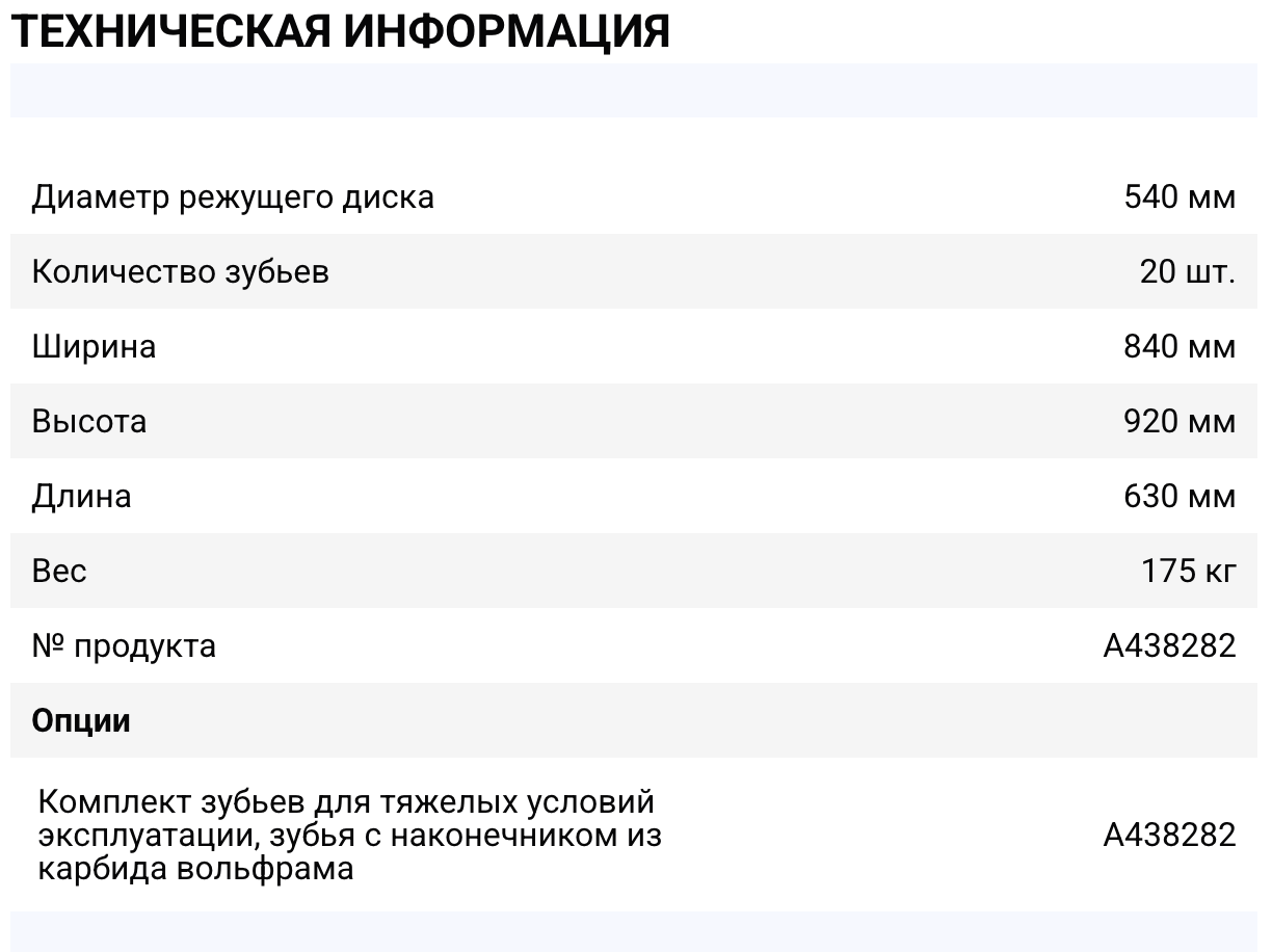 • Оснащен режущимдиском диаметром ø 540 мм со сменными зубьями (20 шт).