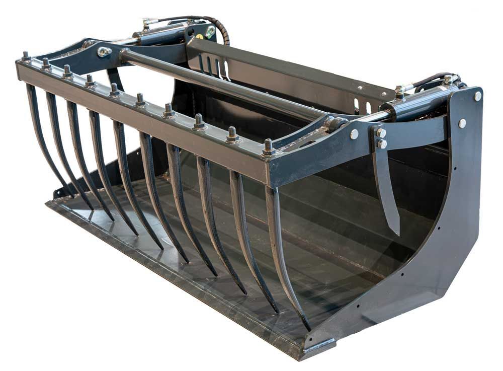 Ковш с гидрозахватом – сочетание обычного ковша и грейфера – подходит для выполнения различных работ. Его можно использовать для перевозки и погрузки ветвей деревьев, деревянной стружки, компоста, соломы, навоза, строительного мусора и пр. Также его можно использовать, как обычный ковш – просто подняв решётку.