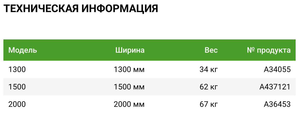 Новая 1500 мм щётка имеет отличное от других версий расположение щетинок: 4 ряда с большим отверствием посередине. Это позволяет исключить её лёгкое застревание. Каждый ряд щетинок можно заменять, к тому же щетинки прочнее, чем на 1300/2000 мм щётках. Поэтому 1500 мм щётку можно использовать для уборки веток, листьев или древесных отходов. Также со щёткой можно работать при помощи ручного захвата у основания.