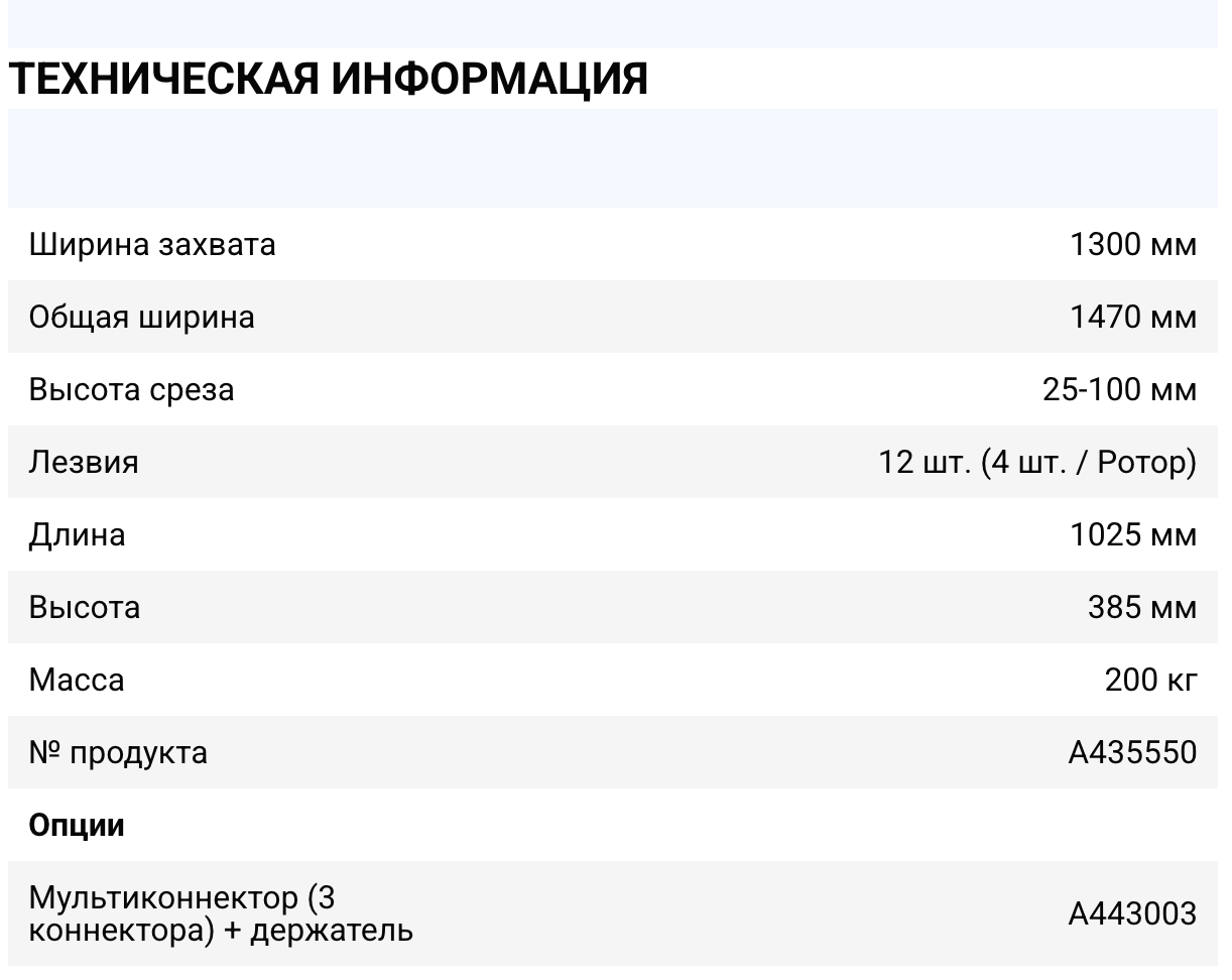 • Оснащен тремя роторами с 4 режущими лезвиями каждый.