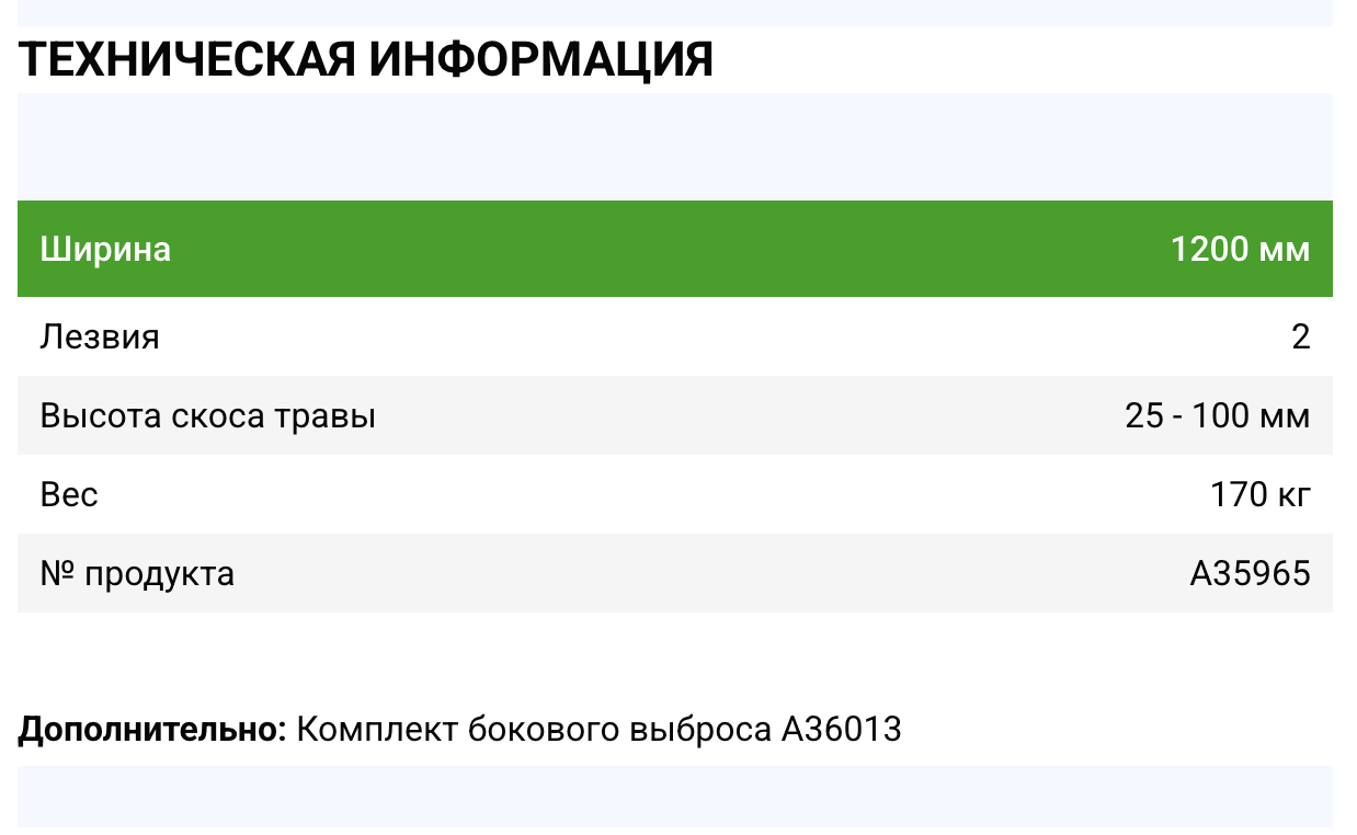 Косилка в стандартном варианте оставляет траву на месте. Комплект для отбрасывания травы в сторону доступен опционально.