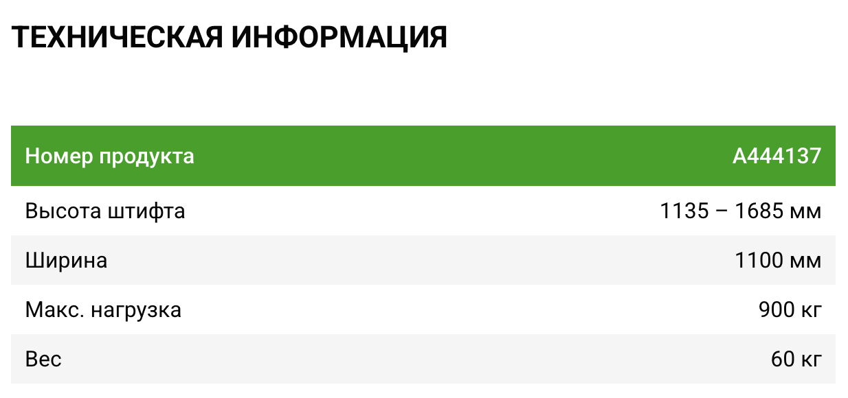 • Выдвижная стрела, регулируемая вручную, может быть установлена на четырех различных позициях в диапазоне от 1135 до 1685 мм.