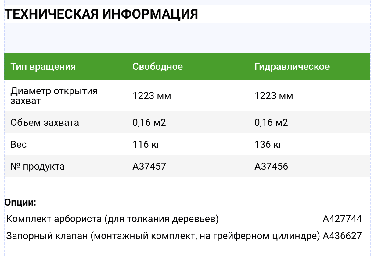 • Доступнен с гидравлическим вращателем или как свободно вращающаяся версия