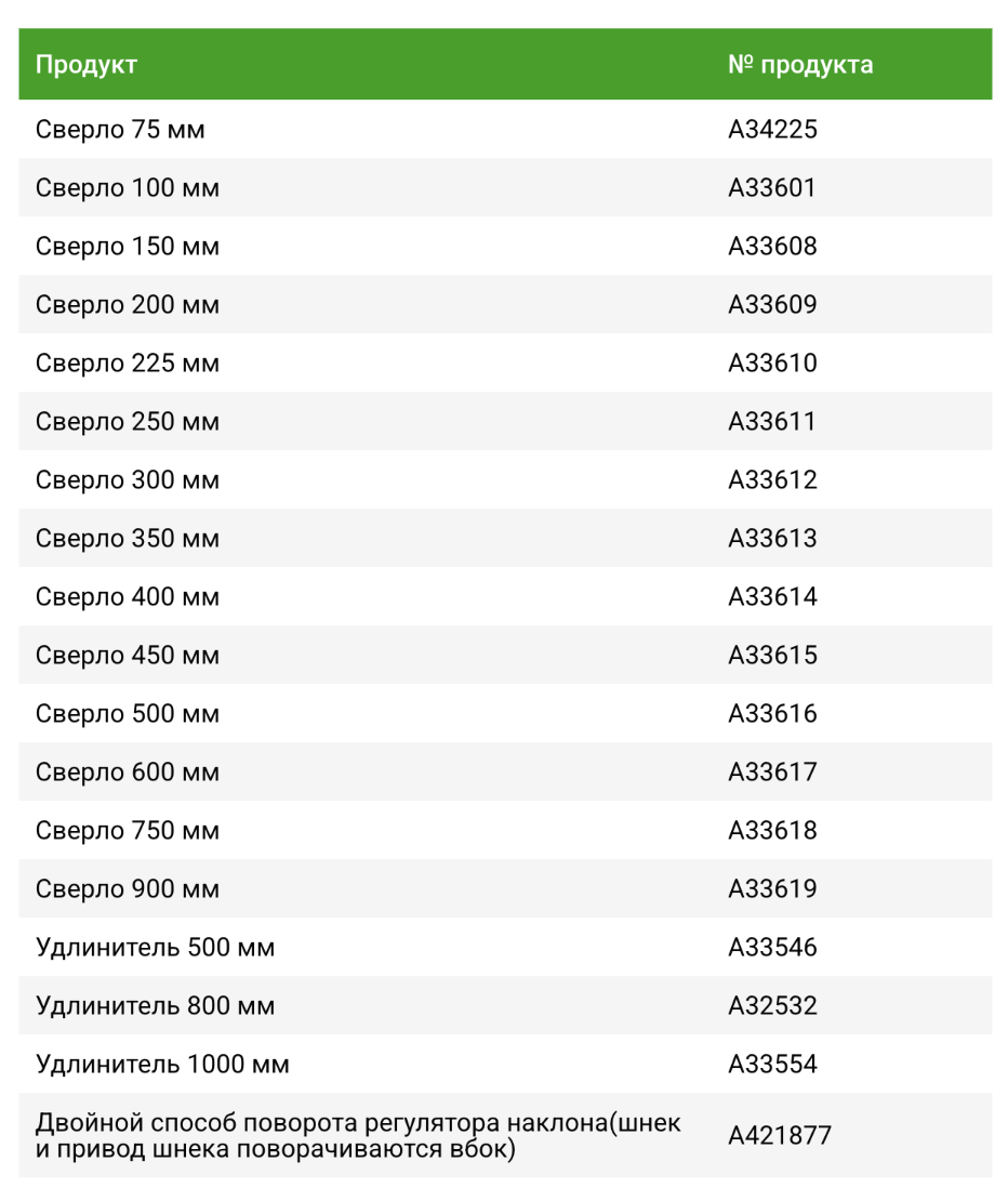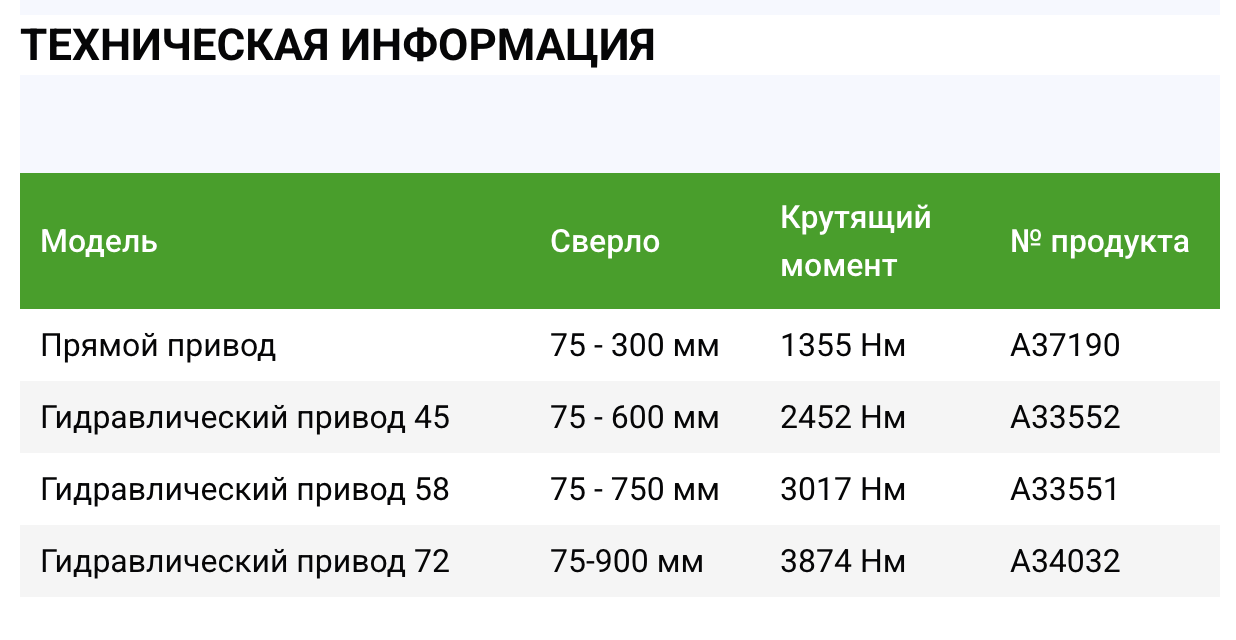 • Выбор привода зависит от максимального диаметра бура; таблица подбора привода приведена ниже